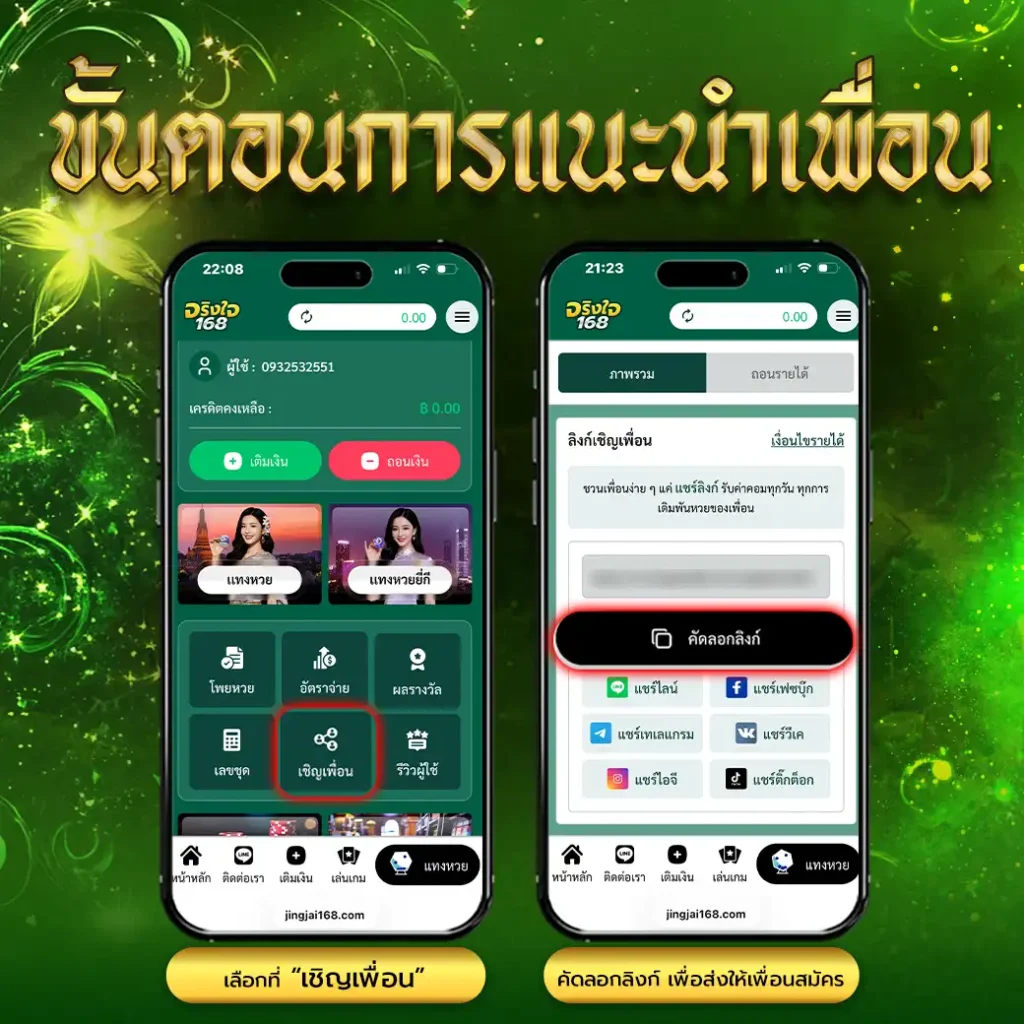 หากสมาชิกต้องการสร้างรายได้เพิ่ม โดยไม่ต้องทำการลงทุนก่อนเลยไว้แต่บาทเดียว จริงใจ168 จะช่วยให้สมาชิกสามารถสร้างรายได้โดย การแนะนำเพื่อนเข้ามาสมัครเป็นสมาชิกและทำการเดิมพันกับทาง หวยจริงใจ โดยสมัครสมาสามารถทำลิ้งค์แนะนำเพื่อนไปให้ เพื่อนของสมาชิกสมัคร ก็จะสามารถสร้างรายได้โดยทันที รายได้จะมาจากยอดการเดิมพันของเพื่อนสมาชิก หรือยอดเสียที่เพื่อนของสมาชิกนั้นเดิมพัน โดยจะจ่ายสูงสุดอยู่ที่ 8% เลยทีเดียว สามารถแนะนำได้ไม่จำกัด และสามารถให้เพื่อนไปแนะนำต่อได้เช่นกัน คุณที่เป็นหัวของตารางอยู่ก็จะได้รับค่าคอมมิชนั่นต่อจากเพื่อนของสมาชิกอีกด้วย โดยไม่ต้องลงแรงหรือทำการลงทุนอีกเลย เหมาะสำหรับผู้ที่ว่างงานอยู่บ้าน หรือพนักงานประจำก็สามารถใช้ การแนะนำเพื่อนเป็นรายได้เสริมเช่นกัน